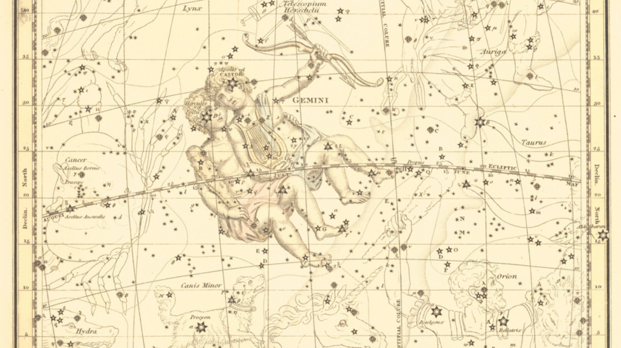 Gemini is based on the Greek myth of Castor and Pollux, the sons of Zeus and an Aetolian princess. While Pollux was immortal, Castor was a mere mortal and eventually died. When Pollux asked Zeus to reunite him with his brother, he turned the twins into the sign of Gemini.